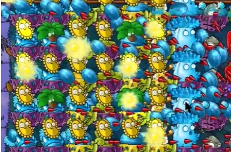 1、寒冰仙人掌阵容:种植七排寒冰仙人掌,并在仙人掌上种植阳光咖啡豆即可保证充足的输出伤害和阳光。