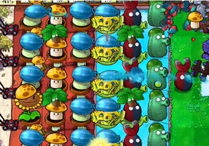 5、最后将泳池中所有的寒冰香蒲铲除,再补充一列冰冻西瓜大喷菇即可过关。