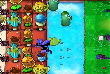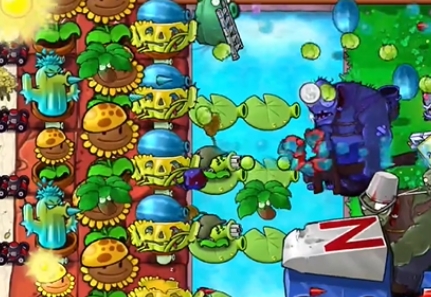 5、最后在泳池中补充两个机枪卷心菜投手就可以轻松击败僵尸了。