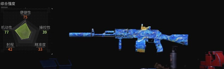 7、AKM就改装完毕,在开镜移速、移速、体力恢复消耗速度、水平垂直后坐力等方面都有一定的提升。