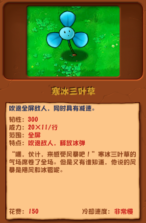 以上就是小编整理带来的植物大战僵尸杂交版寒冰三叶草介绍,更多相关游戏攻略,请关注手游网!
