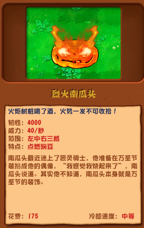 以上就是小编整理带来的植物大战僵尸杂交版烈火南瓜头介绍,更多相关游戏攻略,请关注手游网!