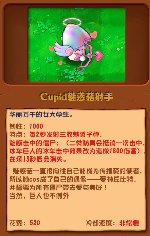 以上就是小编整理带来的植物大战僵尸杂交版Cupid魅惑菇射手介绍,更多相关游戏攻略,请关注手游网!