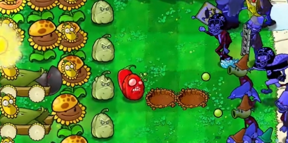 3、然后在左侧种植三个毁灭加农炮,补齐右侧的窝瓜坚果。