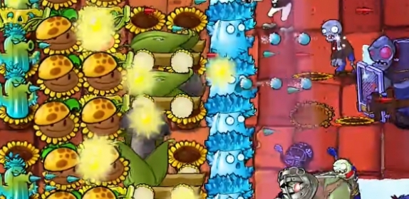 5、最后补齐左侧的寒冰仙人掌和中间的毁灭加农炮即可过关。