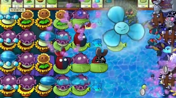 7、最后将所有的向日葵铲除并补充多个喷菇投手即可过关。