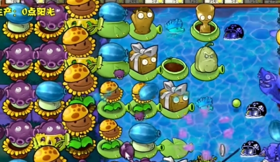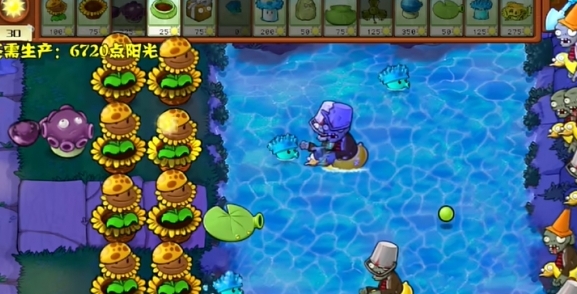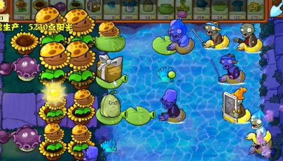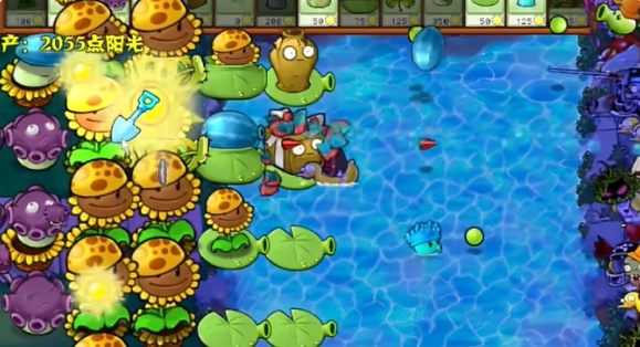 5、铲除左侧的阳光向日葵,种植多个大喷菇投手。