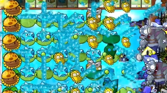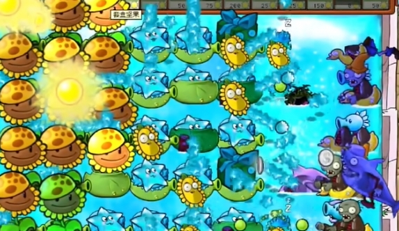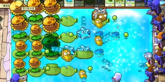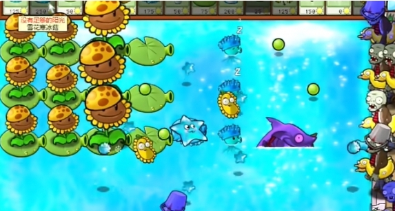 7、最后将向日葵铲除并补充多列寒冰星星即可快速过关。