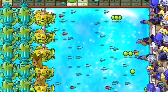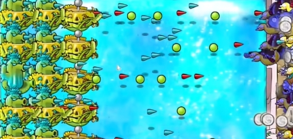 3、继续在左侧补充一列寒冰仙人掌。