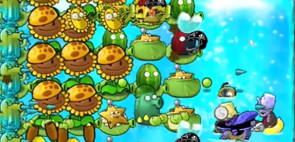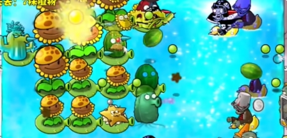 4、在上方继续补充向日葵,在外侧种植一个海兵菇。
