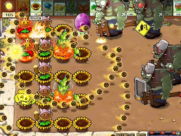 2、猫蒲向日葵和女王向日葵交替种植,哪个好了种植哪个,期间也可以先造2个豌豆喷泉来打伤害。