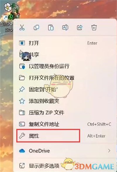 1、右键勾选桌面上的植物大战僵尸杂交版启动exe图标,在弹出的窗口中选择【属性】