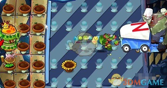 7、最后铲除多余的向日葵,补充多个寒冰仙人掌和玉米投手即可过关。