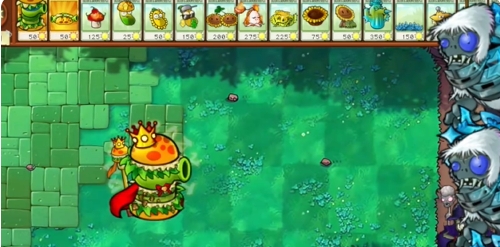4、在左侧种植列辣椒菇和一列玉米投手。