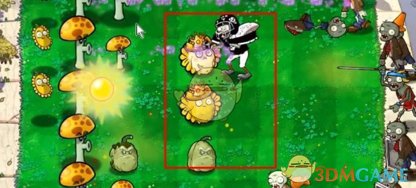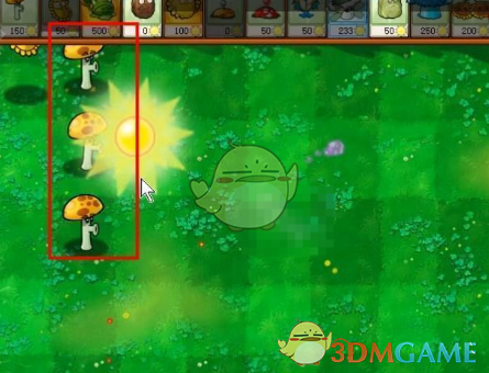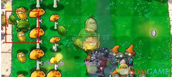 4、在后面种植阳光胆小菇和西瓜香蒲,这两种主要用来攻击。