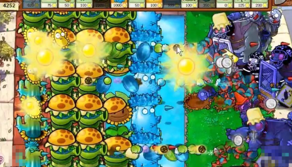 3、在水池上面放一些高冰果用来防御,这个不需要放豌豆睡莲就可以直接放水里。