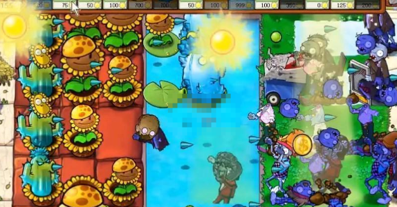 2、打不过的道路上面可以在后面放一些寒冰仙人掌,这个攻击距离远。