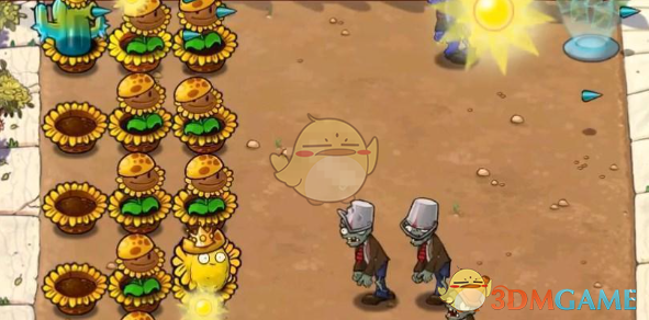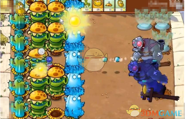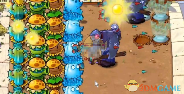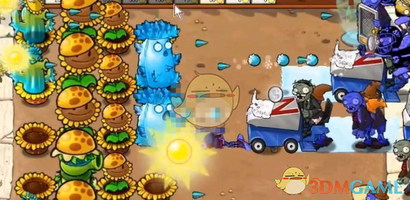 2、先种植三排向日葵来收集能量,然后在后面放寒冰仙人掌来攻击僵尸。