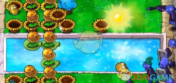 1、植物大战僵尸杂交版挑战模式第63关先放阳光花盆,里面种上向日葵收集能量,然后再放其他的,注意僵尸先来的路。