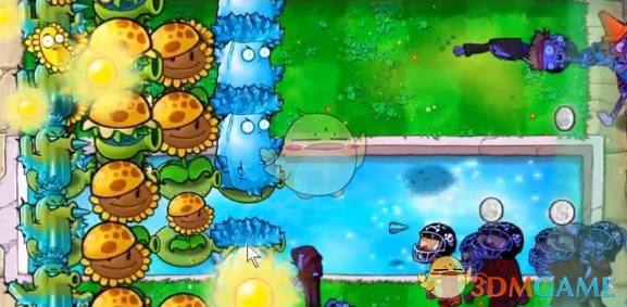 3、在后排放寒冰仙人掌攻击僵尸,前面放高冰果防御,有打不过的可以仙人三叶草清理一下。