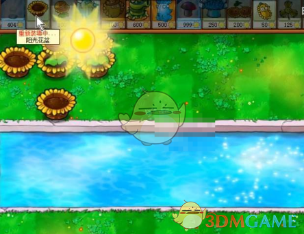 2、在水池里面放豌豆睡莲,在睡莲上面放向日葵。
