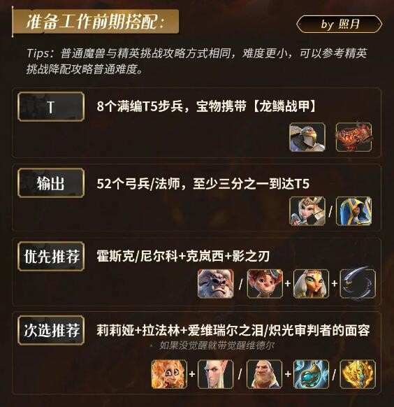 挑战前,玩家们部队的部署与普通熔岩灵挑战时一致,所有玩家分4组,以四方角站位,每组玩家以各自分组的对应熔岩灵作为初始目标。