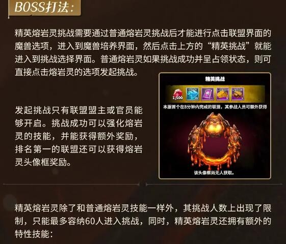 万龙觉醒游戏中精英熔岩灵需要大家在完成普通熔岩灵挑战之后,才可以在联盟界面中进入战斗,只有联盟盟主或官员才可以发起挑战,挑战成功后获得强化熔岩灵奖励,排名第一的联盟还可以获得相应的头像框,接下来给大家带来了《万龙觉醒》精英熔岩灵打法攻略,一起来看看吧!