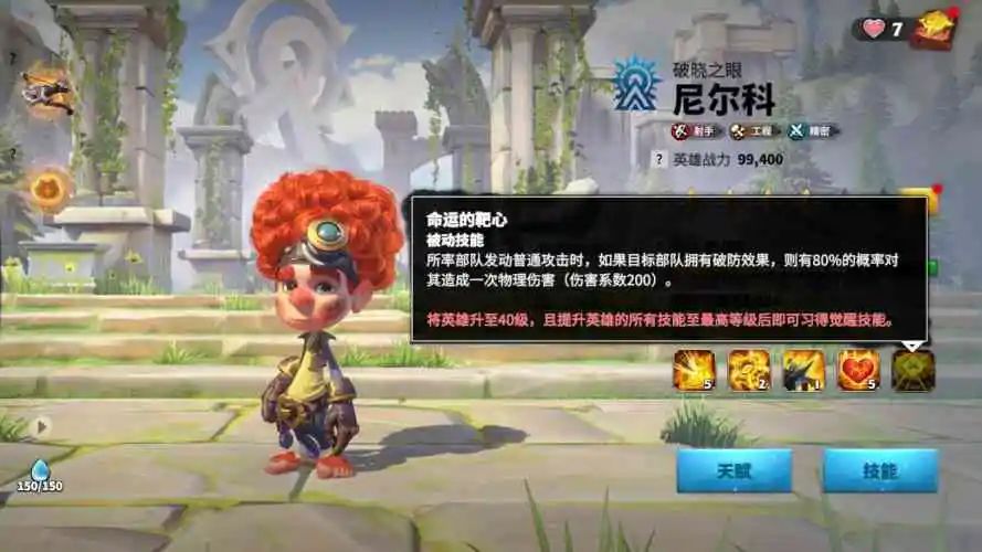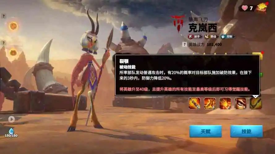 这是一个控制技能,通过降低目标防御力,来间接提升我方对其造成的伤害,同时破防效果还能触发另一个弓兵英雄尼尔科的觉醒技能。