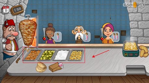 5、最后把做好的沙威玛拖给顾客,点击硬币就可以获取金币收益