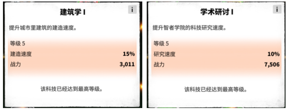 学院:升级第二优先级建筑,学院升级后可以解锁更多的强力科技,其中的“建筑学”和“学术研讨”可以减少建筑和科技的升级时间,节省加速道具。