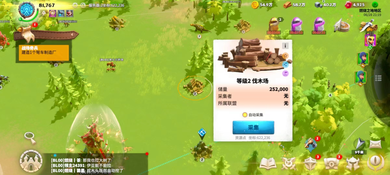 我们所需的各种资源都可以通过采集获取(俗称挖矿);具体办法就是,在搜索功能中找到需要的资源,再选取资源点的等级和采集的将领,之后点击”采集“按钮即可。