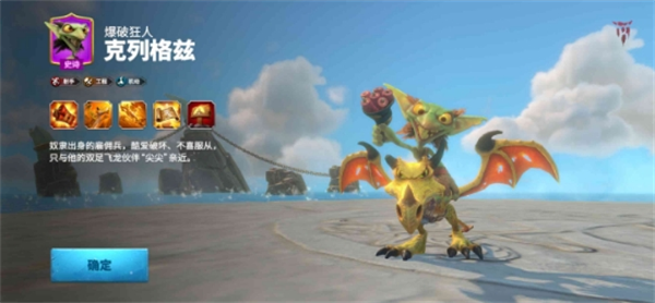 克列格兹是出自荒野聚落阵营的一位射手英雄,同时他还是一名特殊的飞行英雄,可用于组建飞行部队来跨越地形的阻碍,天赋类型为射手、工程和机动。