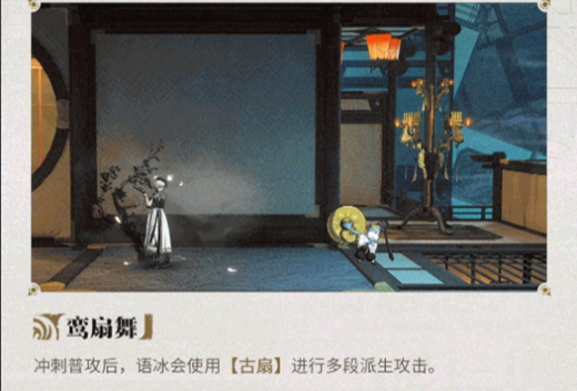 冲刺普攻后,语冰会使用【古扇】进行多段派生攻击。