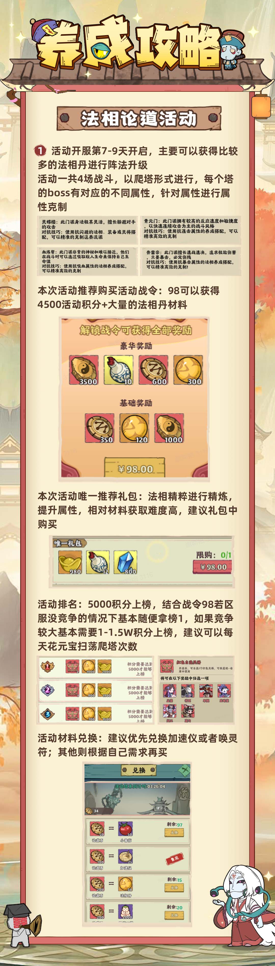 3、本次活动推荐购买活动战令:98可以获得4500活动积分+大量的法相丹材料