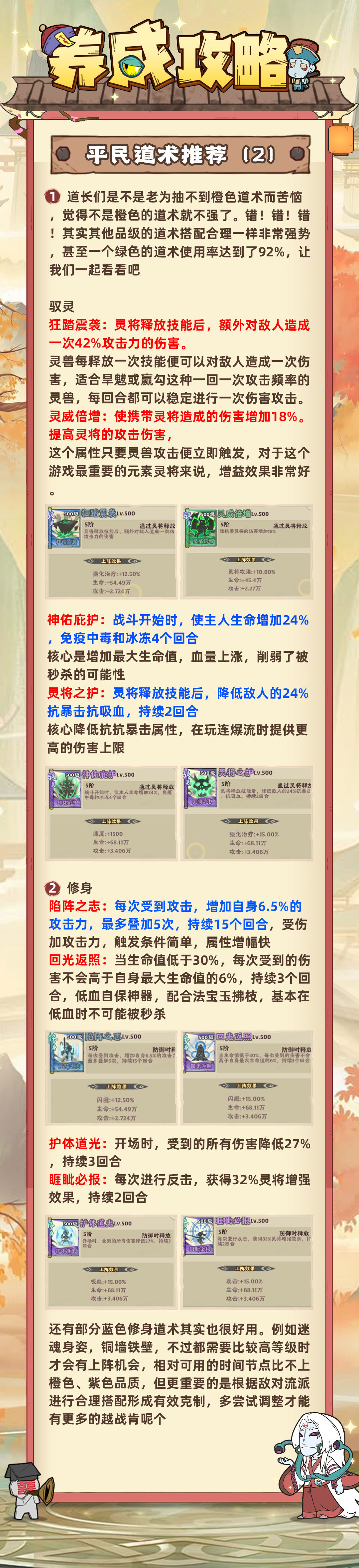 《战盟大乱斗》平民道术推荐!道长们是不是老为抽不到橙色道术而苦恼觉得不是橙色的道术就不强了。错!错!错!其实其他品级的道术搭配合理一样非常强势,甚至一个绿色的道术使用率达到了92%,让我们一起看看吧!