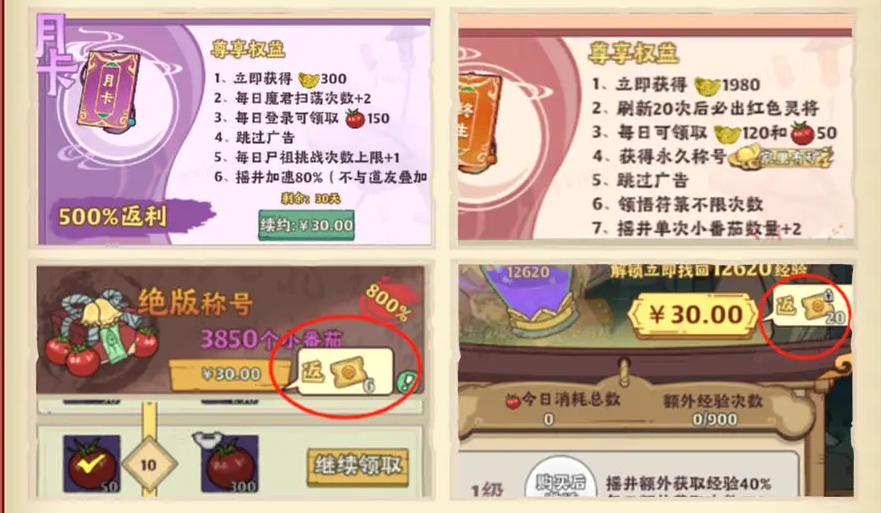 c.通玄真经:获得后开箱子额外获得经验,购买还返还20元代币,在第2天又可以买其他礼包