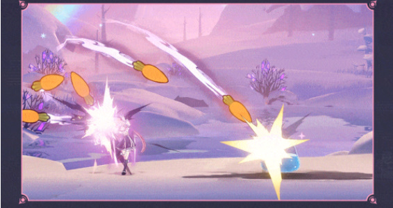 飞天兔启动愤怒模式,短时间发射大量胡萝卜子弹击向敌人,造成阳属性伤害。