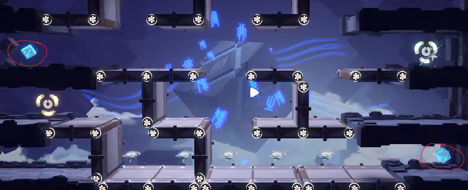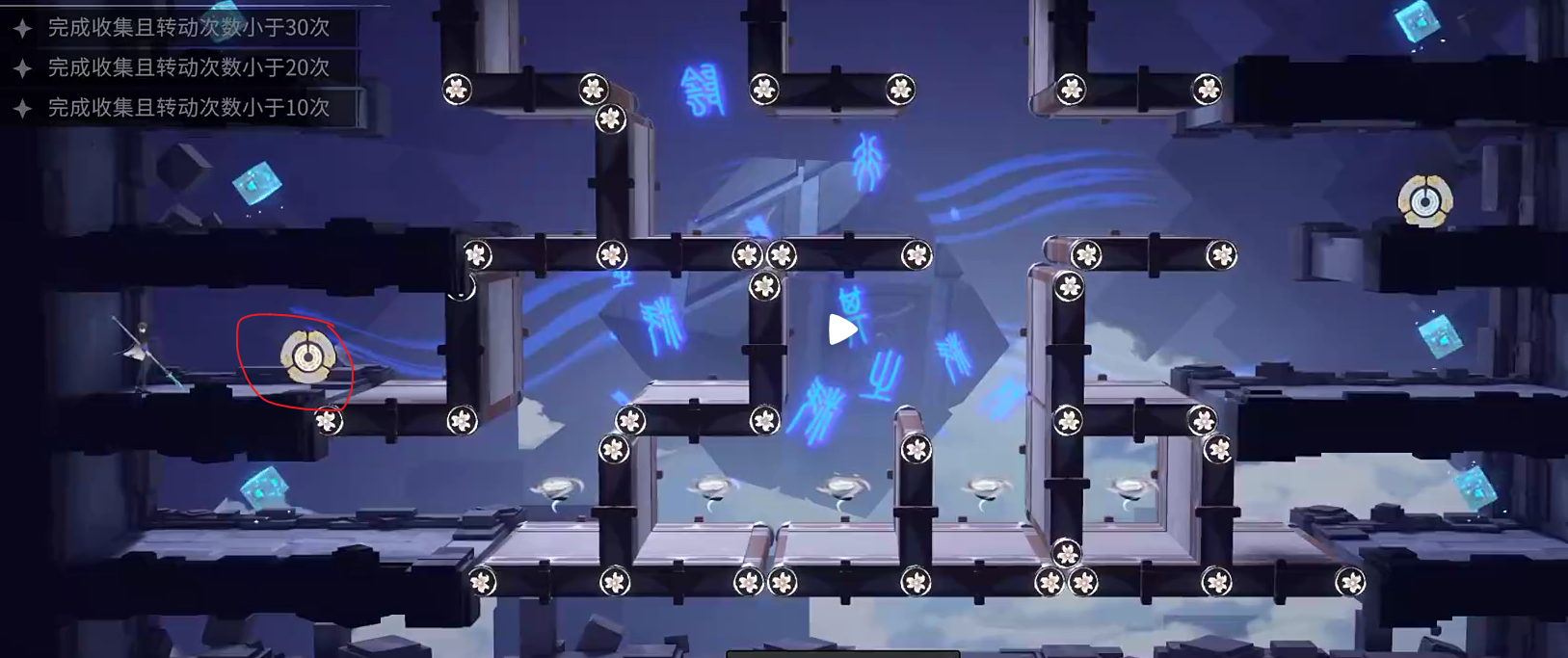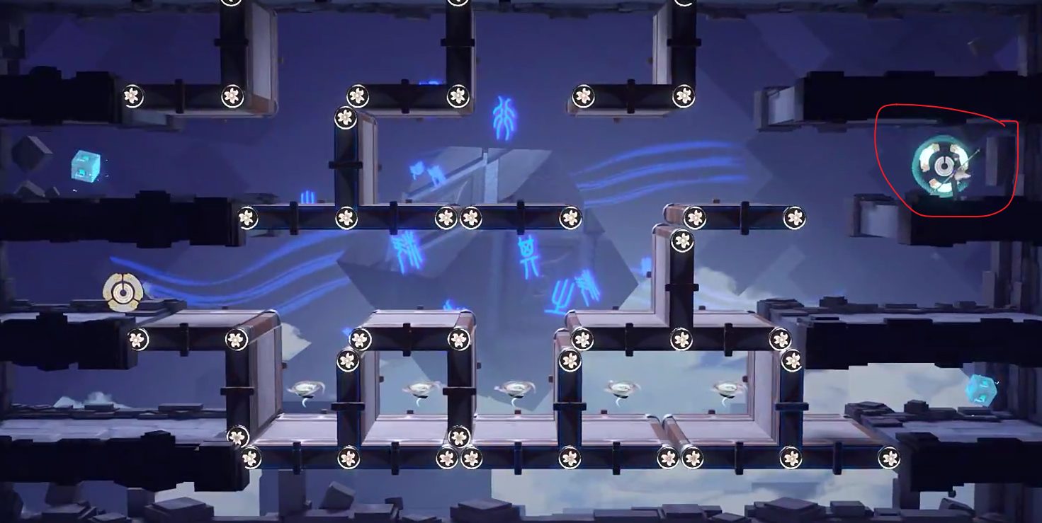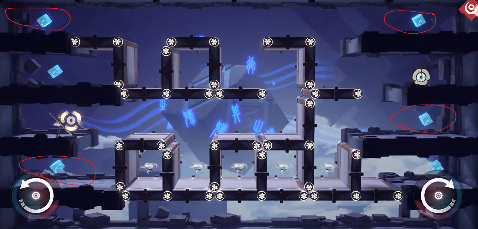 2、转动后,前去收集图中四个道具。