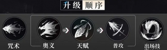 1、优先级:咒术(优先拉满)>奥义>天赋(保持等级持平)>普攻>出场技(最后再点)