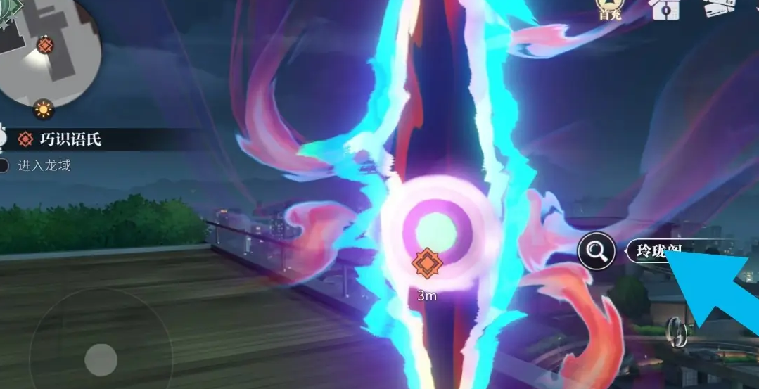 1、进入游戏后打开地图,然后来到火锅店天台点击玲珑阁