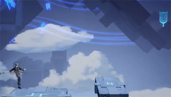 4、来到天上进行冲刺,使用钩锁四下接冲刺。
