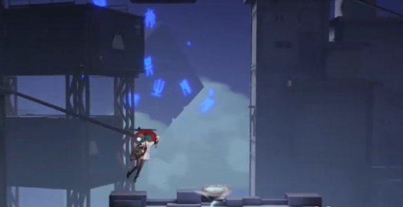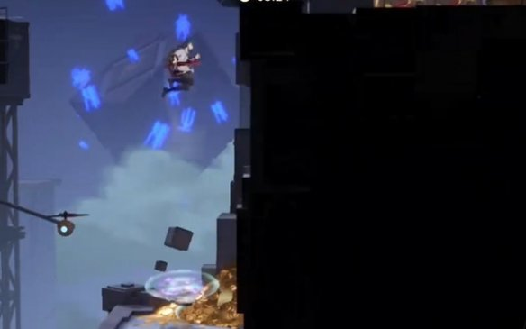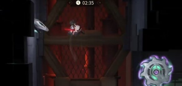 2、接着使用机关滑落在机关上跳一下到第二条线上。