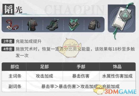 4件套 施放咒术时,恢复一定百分比奥义能量。该效果每18秒至多触发一次。