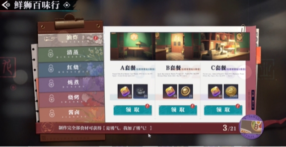 2、进入【油炸】界面后点击右侧的【开拼】,接着完成三个套餐的拼图即可领取对应的奖励。