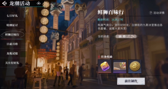 1、首先进入鲜狮百味行活动界面,然后点击右下角的【前往制作】。
