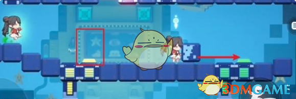3、一人站在图中方框处,另一人将箱子推到机关按钮位置。