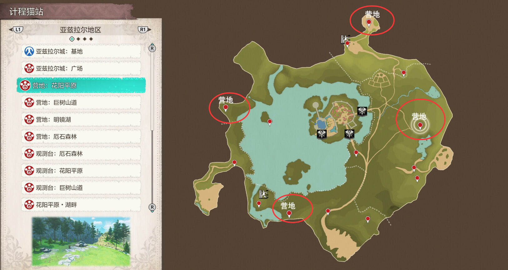 怪物猎人物语3命运双龙中,分别有16处营地可以在讨伐野外的凶异怪物后可解锁,在解锁完全部的计程猫站后还可解锁成就“天蓝色帐篷”,在游玩的过程中,部分营地的位置比较隐蔽,容易错漏,下面就为大家分享怪物猎人物语3命运双龙中全营地站的位置一览。