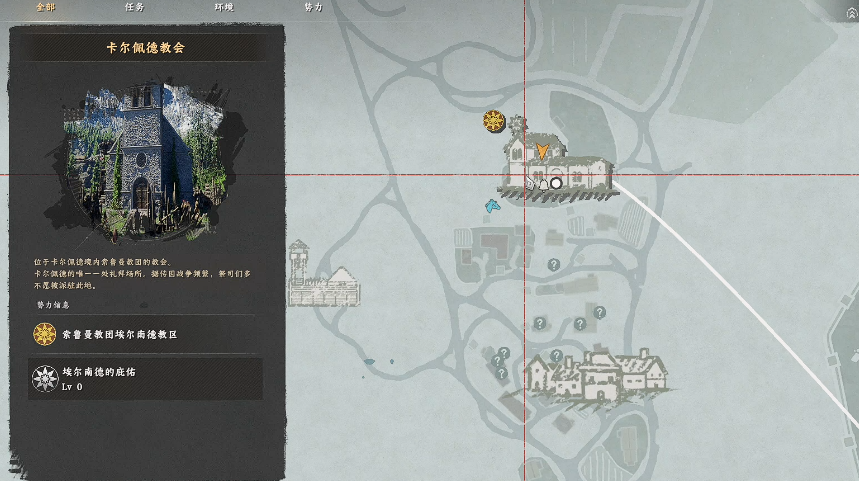 进入该区域后,眼前就是大城堡左侧小镇的最北端,找到教会建筑即可。