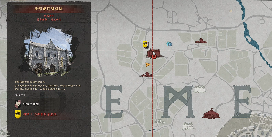 首先找到西部审判所庭院,从二楼窗户位置进入建筑内部。