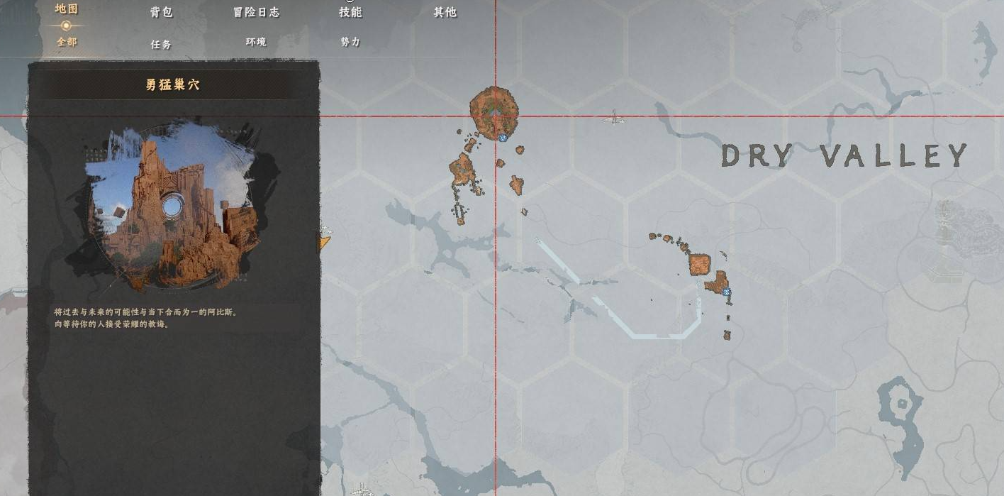 在地图界面按 R3 或鼠标中键传送至勇猛巢穴,该区域位于阿比斯地图东北部的 DRY VALLEY